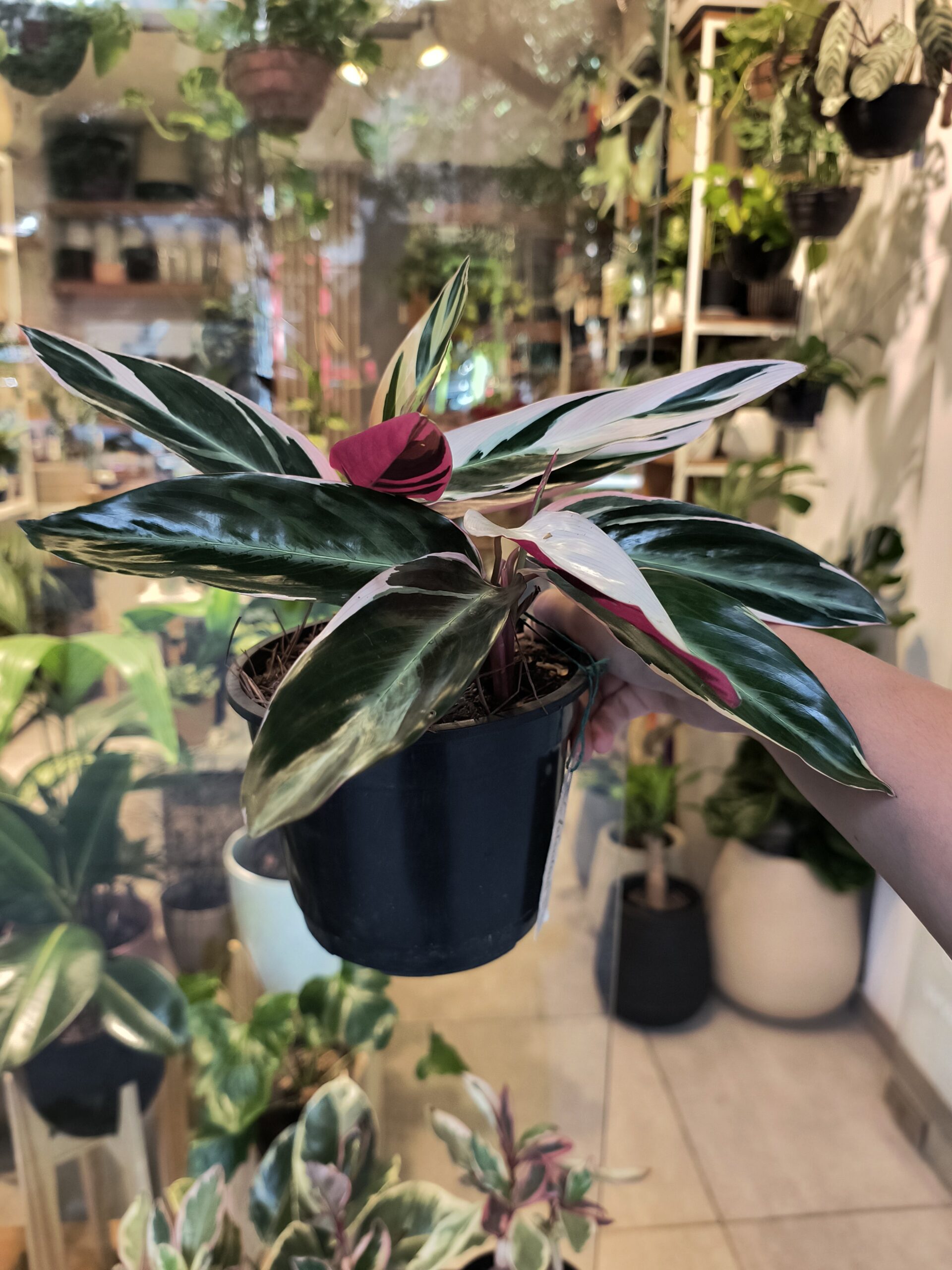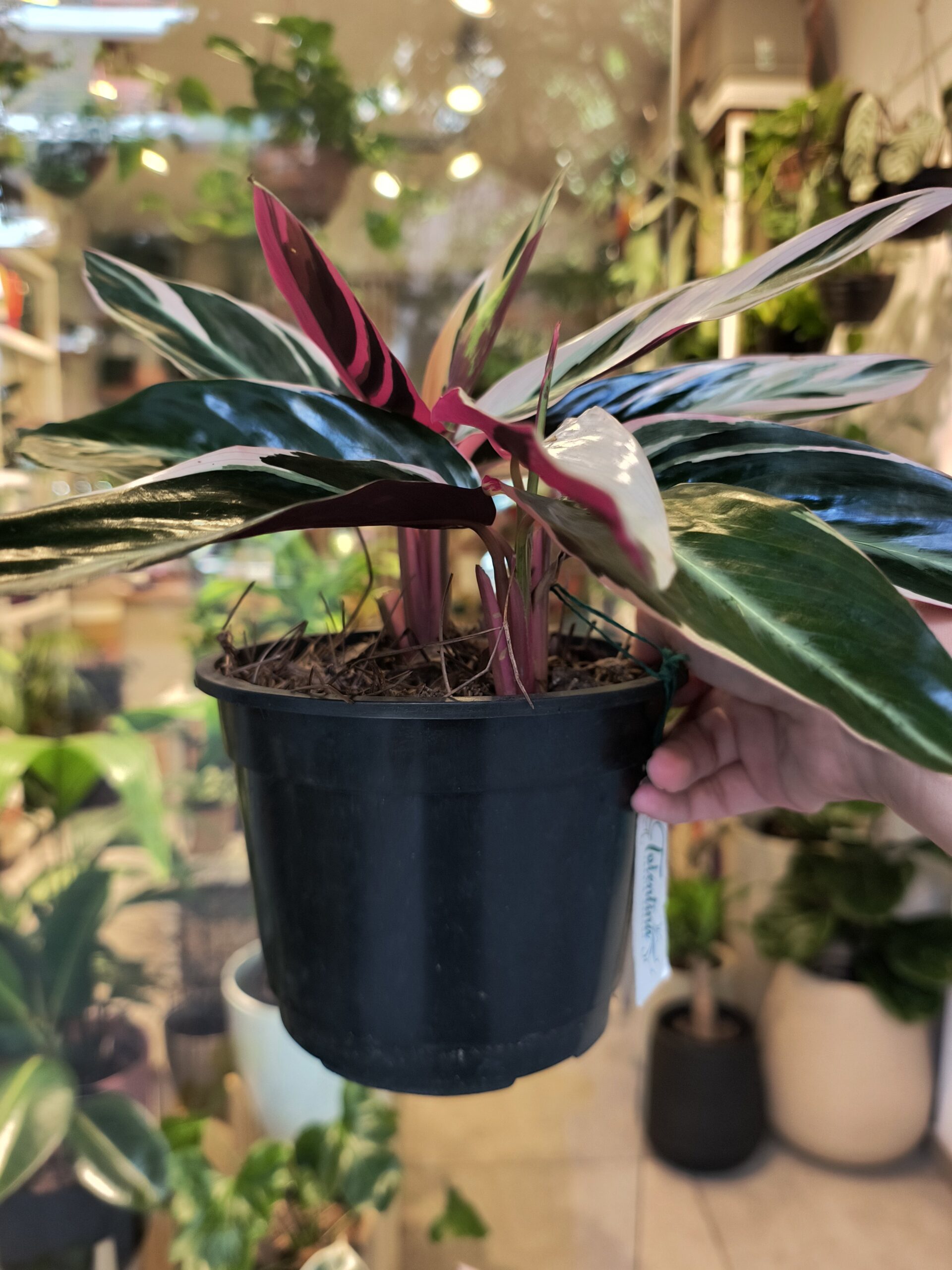 Pertenece a la familia de las Stromanthe, y esta variedad «Triostar» se caracteriza por poseer unas hojas alargadas, con unos colores increíbles que varían desde el rosa, blanco, verde oscuro y verde claro, haciéndola una de las plantas más llamativas y elegidas!